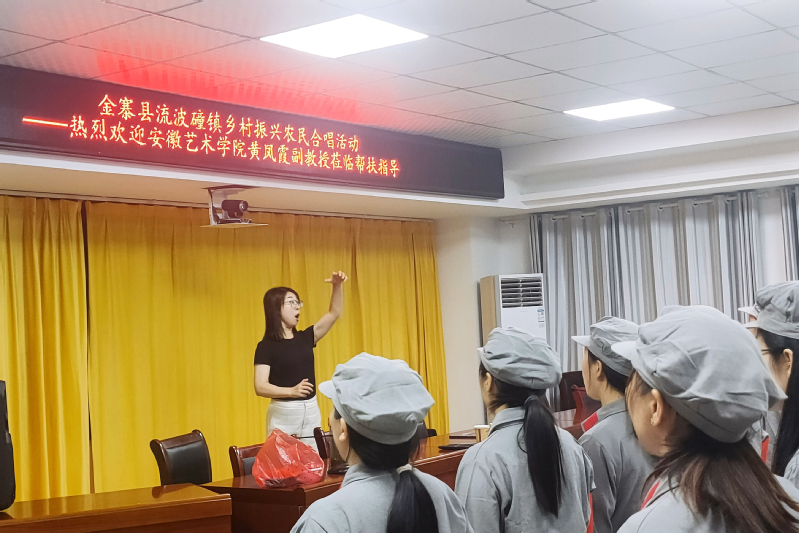 本次活动中,黄凤霞精心指导乡镇合唱队伍,耐心用专业知识进行示范与要求,吸引了其他乡镇人员前来观摩,在乡村文化振兴帮扶中提高了乡民们对文化艺术的审美能力。黄凤霞充分发挥自身专业技能,不仅为参赛农民讲解了声乐演唱与合唱指挥的方法,更是激发了他们的音乐热情,展示出音乐学院教师的社会责任感和使命感。