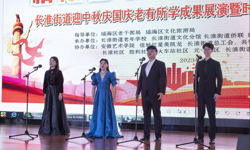 9月26日下午,院团总支与合肥市瑶海区长淮街道建立结对共建关系,组织音乐学院“文艺轻骑兵”小分队助力“情浓迎中秋 歌舞庆国庆”长淮街道迎中秋庆国庆展演。该展演在信地·红星美凯龙举行,吸引辖区众多群众参与观看。