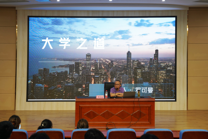 新生导论课邀请到安徽省音协副主席、合肥师范学院音乐学院原院长、教授罗可曼作《大学之道》专题讲座。