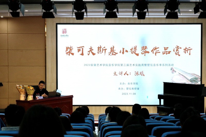 专题讲座上,陈曦首先将柴可夫斯基的生平以及创作背景呈现在师生面前,再通过深入浅出的讲解并演奏了《旋律》《沉思曲》等柴可夫斯基经典作品使学生们对柴可夫斯基的小提琴作品有更深的理解。