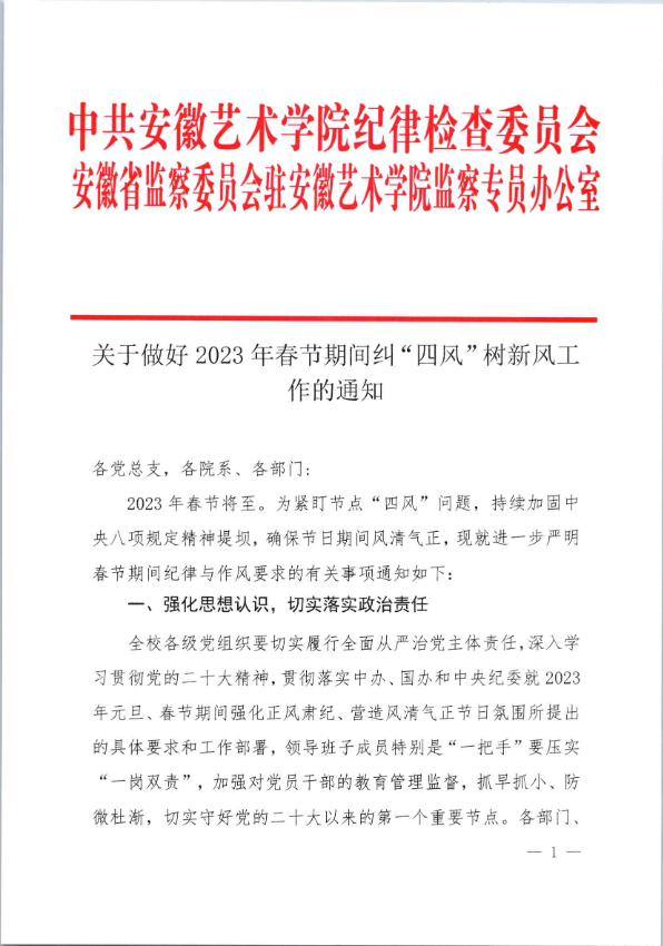 关于做好2023年春节期间纠“四风”树新风工作的通知