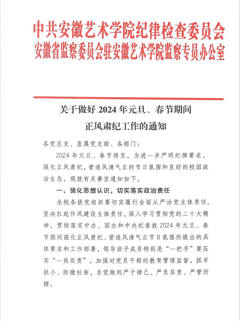 关于做好2024年元旦、春节期间正风肃纪工作的通知