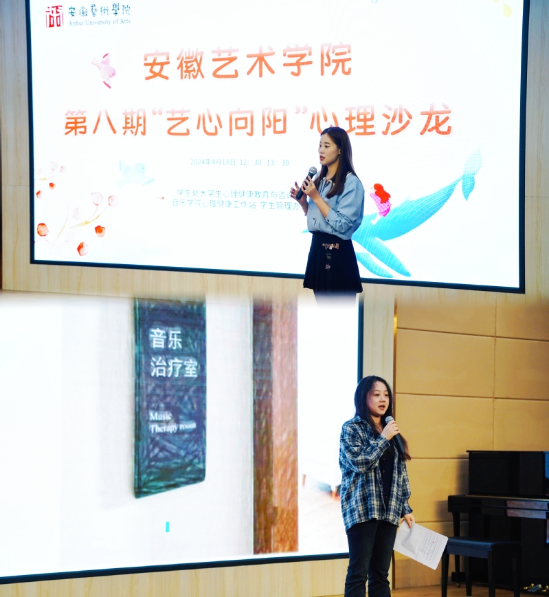为了更好地落实三全育人、五育并举,打造心理与艺术门类融合发展的心理健康平台,2024年4月18日,由我校大学生心理健康教育与咨询中心主办,音乐学院心理辅导站和学生管理办公室承办的第八期心理沙龙活动在音乐学院南楼报告厅举行。本次沙龙活动主题为音乐治疗,活动由音乐学院心理辅导站站长张珂老师主持。