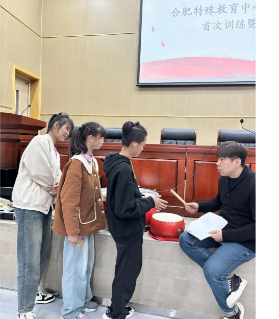 2024年4月17日,乐动网官网“文艺轻骑兵”携手乐动网官网管弦教研室教师汪伊珺、张禹、杨阳冰和学生陈旭冉来到合肥特殊教育中心,为合肥特殊教育中心鼓号队的同学做指导训练。