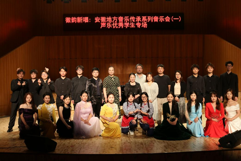 音乐会中,声乐专业学生为观众们带来了十二首极具安徽特色的民歌作品,用独唱、男女对唱、小组唱等丰富多彩的演唱形式,凸显了多元性的地方音乐韵味。