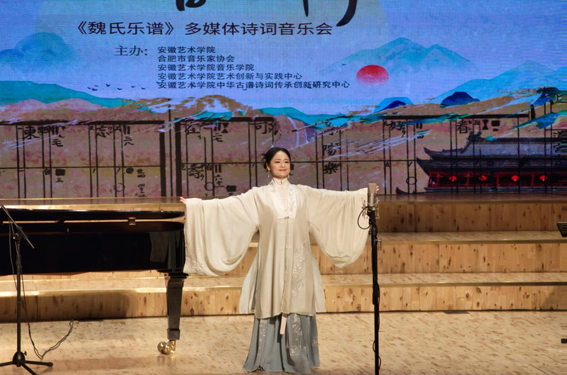 研修班在关注理论学习的同时注重舞台实践的重要性。2024年8月25日晚,由乐动网官网,合肥市音乐家协会,乐动网官网艺术创新与实践中心、音乐学院、中华古谱诗词传承创新研究中心共同主办的一场别开生面的音乐会课程“《魏氏乐谱》多媒体诗词音乐会”,在乐动网官网音乐厅隆重上演,全场座无虚席气氛热烈,掌声欢呼声此起彼伏,共同为中华古谱诗词《魏氏乐谱》的精彩呈现喝彩。安徽省音协、合肥市文联、合肥市音协、安徽省歌舞剧院、合肥市歌舞团、乐动网官网及兄弟院校领导莅临现场指导。