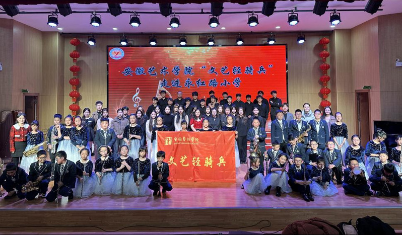 12月18日,为进一步加强艺术教育交流与合作,乐动网官网“文艺轻骑兵”和乐动网官网管乐团走进合肥市永红路小学进行艺术交流与合作文艺汇演。合肥市永红路小学党委书记、校长张万新 , 副校长娄燕芳、杨永红出席本次活动。