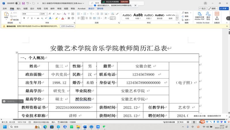 12月25日18:30,音乐学院成功召开“教师个人业务档案建设工作”评估专题线上会议。本次会议由张祖顺副院长主持,音乐学院教学科研办公室负责人和部分工作人员、行政办公室负责人以及各教研室负责人参加。