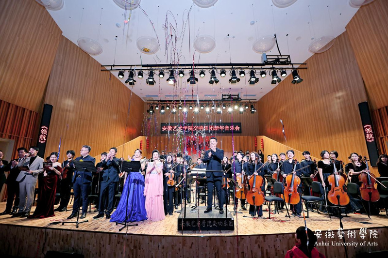 随后,多首中国经典及原创作品依次呈现,包括庐剧《秦雪梅观画》、黄梅戏《海滩别》,原创交响乐作品《大别山交响曲》的第一、二乐章,黄河三部曲《黄河颂》、《黄水谣》和《黄河之水天上来》。音乐会以合唱《领航》作为结尾,唱响了时代的主旋律,为整场演出画上了圆满的句号,为观众呈现了一场视听盛宴。