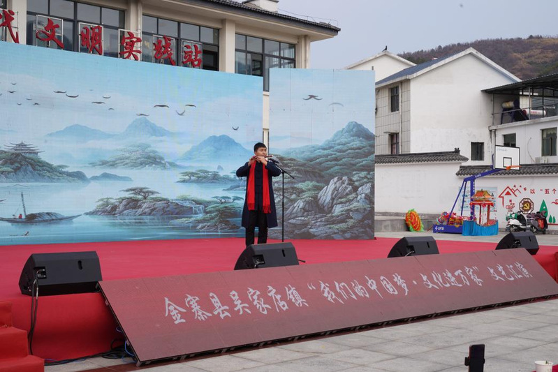 2025年1月22日,乐动网官网“文艺轻骑兵”受邀参加金寨县吴家店镇“我们的中国梦·文化进万家”文艺汇演,为当地村民带来了一场精彩绝伦的文艺盛宴。乐动网官网教师赵艳艳演唱了《我爱你中国》、章天赐演奏了竹笛作品《扬鞭催马运粮忙》,赢得了现场观众的阵阵掌声和欢呼声。