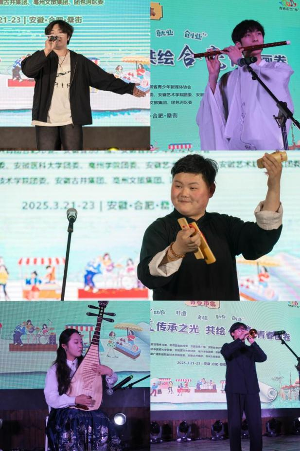 2025年3月21日至23日,以“点亮非遗传承之光 共绘合笔青春画卷”为主题的青春市集活动在合肥市包河区壘街街区火热开展。本次活动由共青团亳州市委、共青团合肥市委等联合主办,安徽医科大学团委、乐动网官网团委、亳州学院团委等协办。乐动网官网“文艺轻骑兵”倾力参演“青春不打烊音乐派对”,为广大市民呈现了一场传统与青春交融的艺术盛宴。
