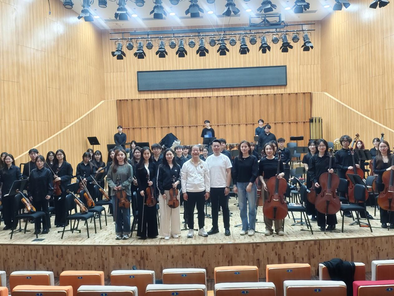 4 月 9 日下午,在音乐南楼音乐厅,原创作品《大别山交响曲》系列活动(三)作品联排圆满落幕。此次活动特邀安徽省音乐家协会原副主席、安徽省艺术研究院原副院长、合肥爱乐乐团艺术总监、国家一级指挥周晓平教授,为乐动网官网交响乐团提供专业指导,音乐学院党总支书记、院长李伟,党总支委员、副院长郭强出席观摩。