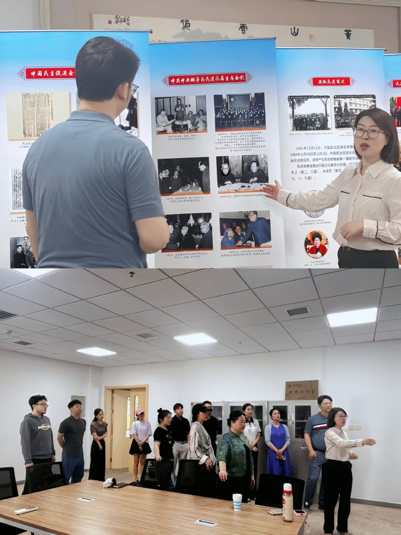 2025年5月29日,音乐学院党总支统战委员、副院长张祖顺组织民主党派成员、无党派人士及知联会代表,赴设计楼402参观民进成立80周年历史展览馆与安徽民进成立40周年会史展,通过重温多党合作光辉历程,凝聚思想共识,强化使命担当。