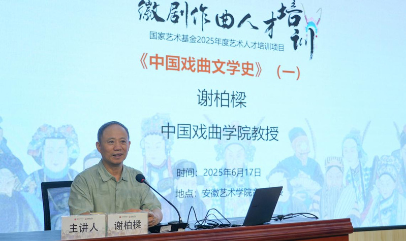 6月17日下午,中国戏曲学院谢柏樑教授以时间为轴,从戏曲起源讲起,系统梳理宋元南戏、元杂剧等历史时期的戏曲文学发展脉络,深度解读各时期代表作家作品,为学员构建起完整的戏曲文学知识框架。
