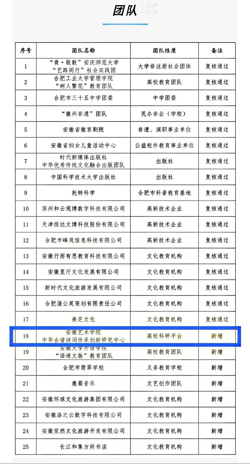 2025年6月15日,乐动网官网中华古谱诗词传承创新研究中心正式入选安徽博物院2025年度“教育合伙人”团队,成为年度新增8个团队之一。