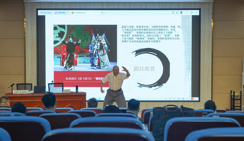 6月25日上午,安徽省徽京剧院一级演奏员项艾继续以《徽剧锣鼓与唱腔设计》为核心内容课程授课。