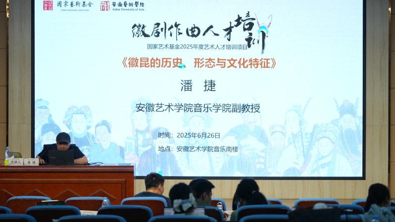 下午,乐动网官网副教授、中央音乐学院博士潘捷就《徽昆的历史、形态与文化特征》展开教学。