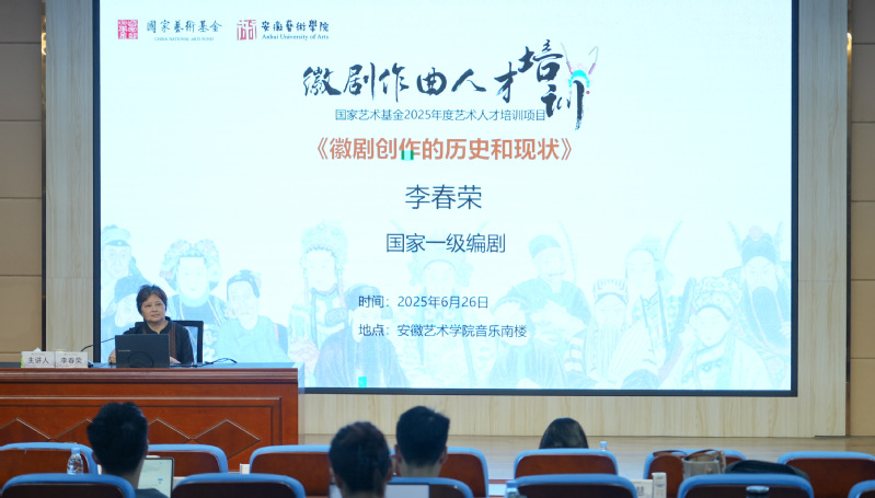 课程中,李春荣以数据剖析徽剧演出团体现状、剧作家生态及经典剧目传承情况,更以新编剧《吕布与貂蝉》为例,阐释剧本创作需贴合年轻一代心理,为演员塑造剧种经典形象,为徽剧艺术发展注入新动能。