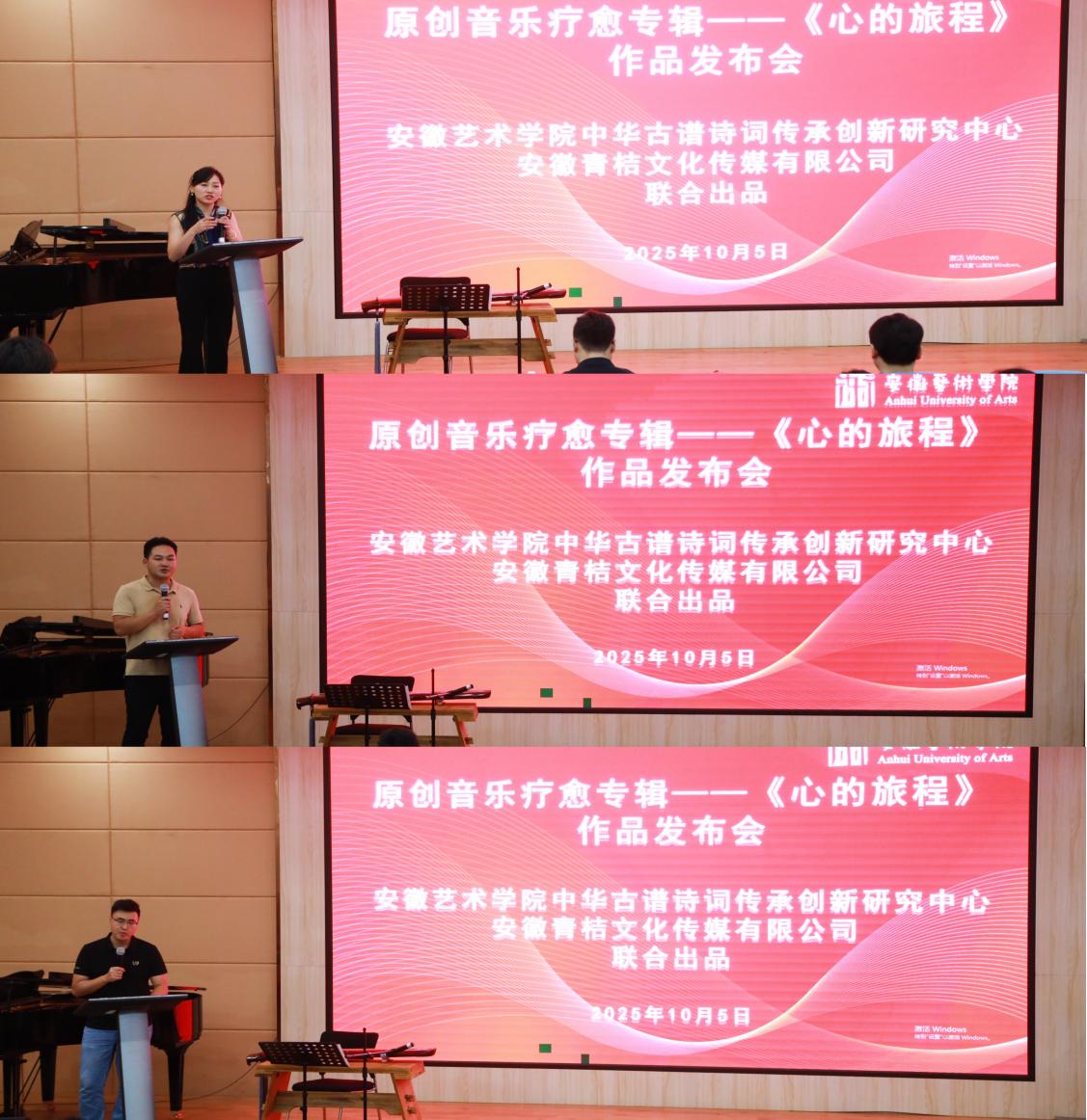 作为专辑联合出品方,乐动网官网中华古谱诗词传承创新研究中心与安徽青桔文化传媒有限公司从学术研究到艺术创作,为专辑的专业性与疗愈效果保驾护航。旅美艺术指导、美国西弗吉尼亚大学音乐博士、音乐认证疗愈师杨霖希率先分享专辑创作故事,她详细介绍了传统音乐元素与现代疗愈理念的融合过程,让现场观众深入了解专辑背后的匠心。随后,安徽青桔文化传媒负责人赵化彬上台致辞,他表示,打造《心的旅程》的初心是希望为当代人提供一份 “声音良药”,帮助人们在快节奏生活中找到内心的宁静。安徽中医药大学心理学系主任张航教授从专业角度给出解读。他指出,《心的旅程》并非普通音乐专辑,其收录的旋律不仅舒缓平静,更巧妙搭配雨声、海浪声等自然白噪声,融入颂钵、铜锣、风铃等元素,能以特定频率影响人体能量场与脑波状态,通过细胞和谐共振调节神经、内分泌与免疫系统。经专家鉴定,专辑已具备治疗睡眠障碍、助眠、缓解焦虑、释放负面情绪等多重疗愈功能,为音乐疗愈的科学性提供了权威支撑。