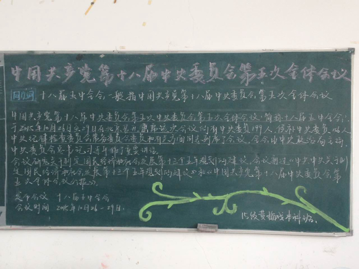 会后,董书记还带领全体教师党员到我系专业教室检查了各班级主题板报的宣传情况,对师生的学习热情提出了表扬。