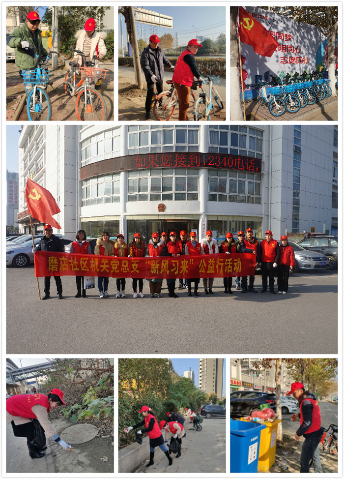 活动中,学院机关党总支党员和磨店社区机关党总支党员在完成毅行的同时,将道路两旁零散停放的共享单车有序摆放、集中整理。各位党员扶起倒下的单车,随手捡拾路边、绿化带深处的垃圾……大家不怕苦不怕累,齐心协力,共驻共建,用自己的实际行动充分发挥党员模范带头作用,切实服务群众,用实际行动感召和带动社区居民一起爱护环境,积极营造卫生整洁的生活环境,为创建文明城市做出自己应有的贡献。经过整理、清扫,环境明显改善,街区面貌焕然一新。(撰稿:徐一辰 摄影:王力平 初核:杨丽 审定:束舒娅)