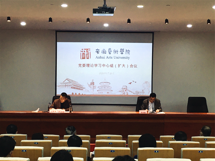 3月26日下午,学院党委理论学习中心组在美术楼报告厅召开2020年第2次学习扩大会议。学院党政主要负责人樊嘉禄主持会议并讲话,党政领导班子成员及中层(助理)干部参加会议,各党总支纪检委员、组织委员、宣传委员、统战委员参加旁听。