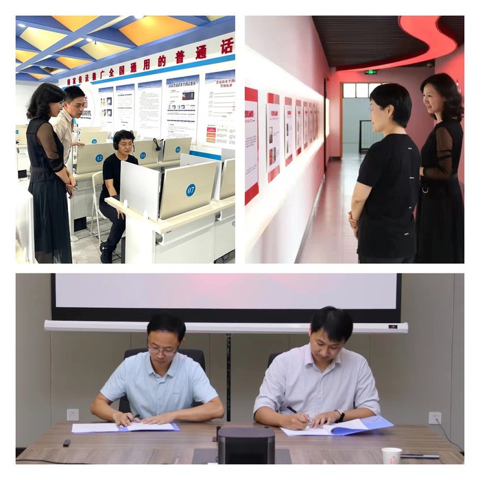 新闻播音系和图萌(上海)科技有限公司代表现场签订“安徽省金寨县红色教育资源VR拍摄制作”横向科研项目合同。新闻播音系将组建师生团队,以安徽省金寨县红色教育资源为主题,创作VR短视频。