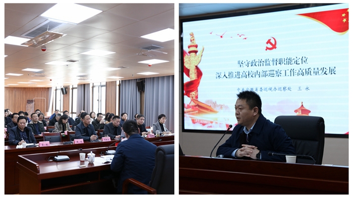 王永以《坚守政治监督职能定位,深入推进高校内部巡察工作高质量发展》为题作巡察业务讲座,从政治巡察是什么、巡什么、怎么巡三方面开展培训,明确高校巡察方向任务,指明监督重点,提供方法指导。
