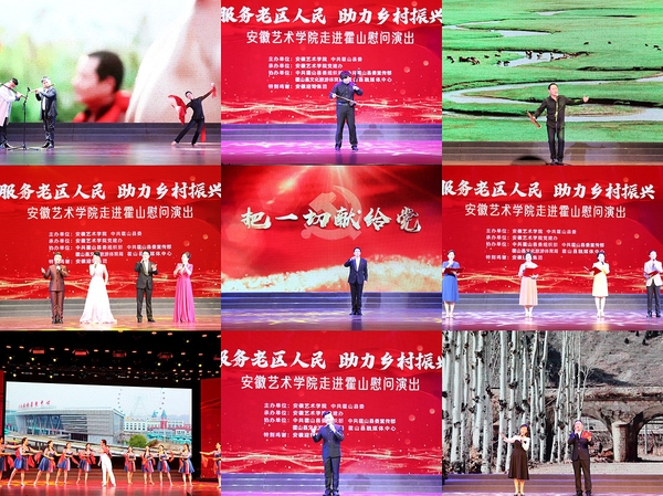 本次演出由学校党建办承办,旨在通过走进大别山革命老区之一霍山县,深化学校教师党员“服务老区人民 助力乡村振兴”的“我为群众办实事”精神,进一步增强学校党员干部服务地方发展的责任意识,夯实学校基层党建“以实求新”的工作作风。活动延续学校党史学习教育“双培双送”特色项目,进一步发挥学校专业特色,送文艺演出下乡,丰富基层群众的文化生活。 (撰稿:魏媛媛 摄影:王淑红 初核:孙来法 编辑:朱新水 审定:束舒娅)