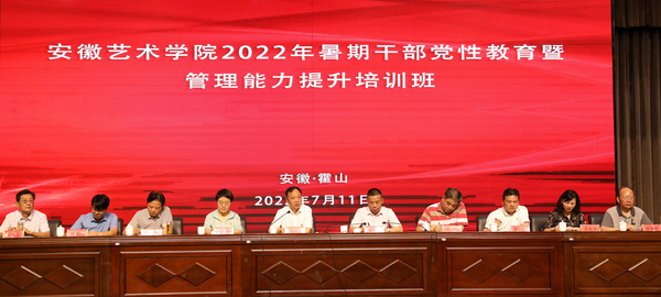 7月11日,我校2022年暑期干部党性教育暨管理能力提升培训班在霍山开班。校党委领导班子成员、科级及以上干部、各党支部书记、教研室主任等100余人参加培训。