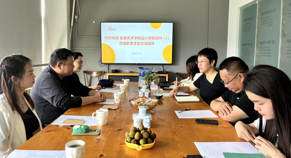 5月25日上午,设计学院党总支书记陈明一行来到安徽乾景旅游文化创意有限责任公司进行专题调研。安徽乾景旅游文化创意有限责任公司董事长赵媚、总经理方正等接待陈明一行。