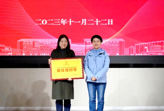 经过现场评委公开、公正、公平地评审,美术学院获评最佳组织奖。校党委书记韩军为其颁奖。