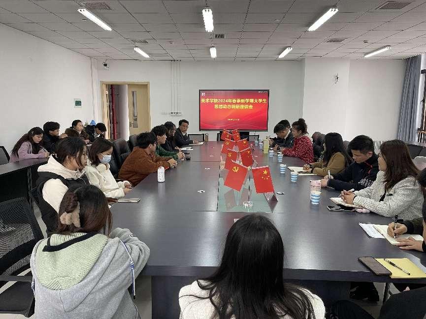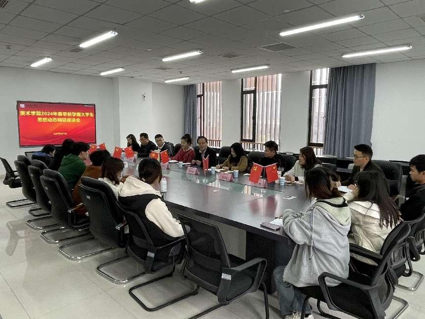 为全面、客观、准确地了解新学期学生的思想动态,进一步提高大学生思想政治教育的针对性和实效性,3月13日下午,美术学院在美术楼307会议室召开2024年春季学期学生思想动态调研座谈会。宣传部、学生工作部(学生处)、教务处、保卫处、团委、马院和各班级学生代表参加会议,会议由学院党总支副书记李卫国主持。